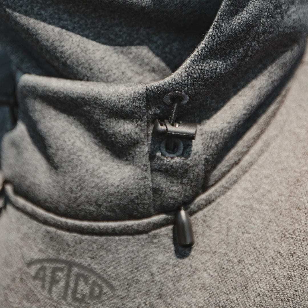 Keeping your time on the water more comfortable, the Aftco Reaper Technical Sweatshirtis one of the best-selling sweatshirts in the fishing industry for good reason. Its integrated face and neck warmer is beloved by many, giving quick adjustments when you need them. The Reapers 100% Poly Bonded Microfleece construction makes for great outerwear on those cooler days & nights but also makes for a great mid-layer underneath a heavier outer shell on those very cold days on the water.A cinch shock cord anchoring system keeps everything locked down in high winds or when you are running to your next spot in the boat, while laser-cut vented underarms keeps breathability.