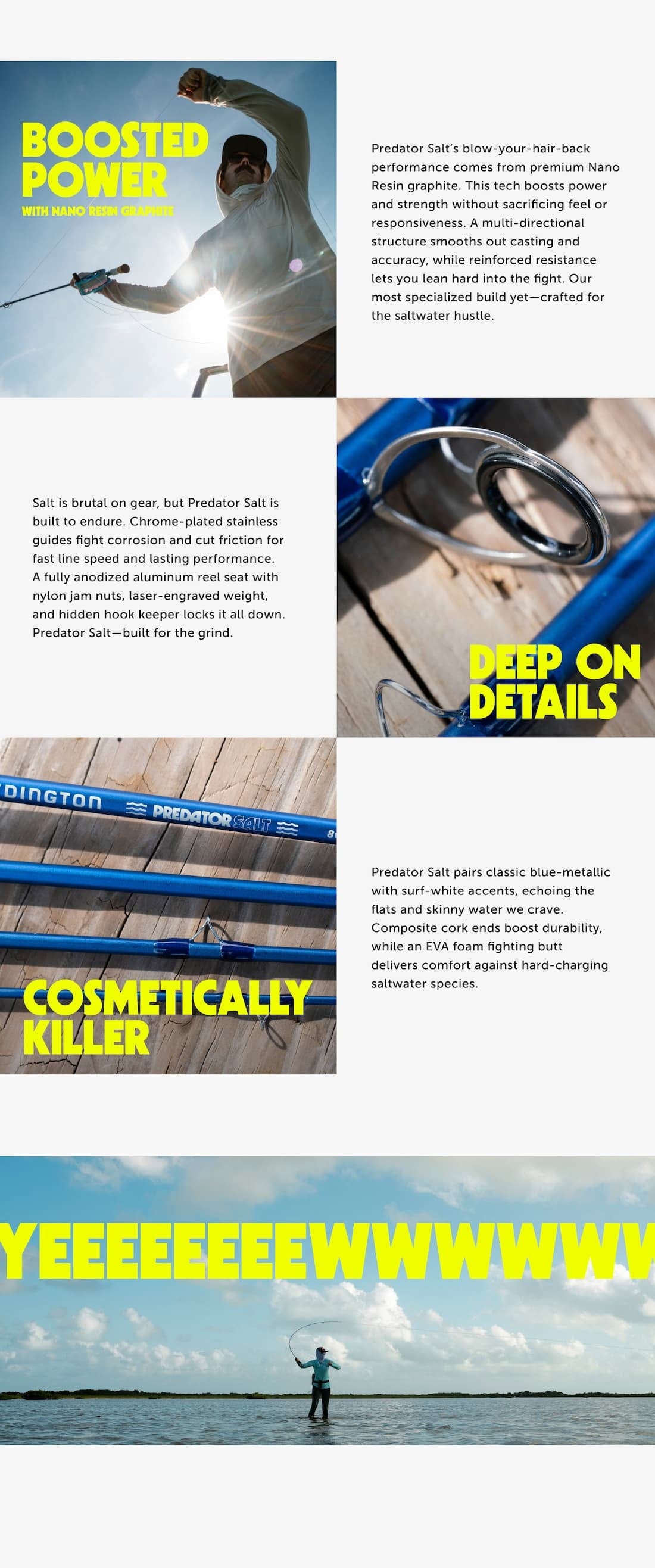 Introducing the all-new Predator Salt rod family. Fully redesigned for Fall 2025, we’ve engineered every facet of our top-selling Predator series to meet the demands of saltwater fly fishing.Whether targeting local Stripers, Redfish, and Coastal Cutthroat, or planning an adventure for Bonefish, Tarpon, or Permit, the Predator Salt is the ideal companion for saltwater anglers.