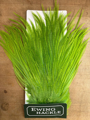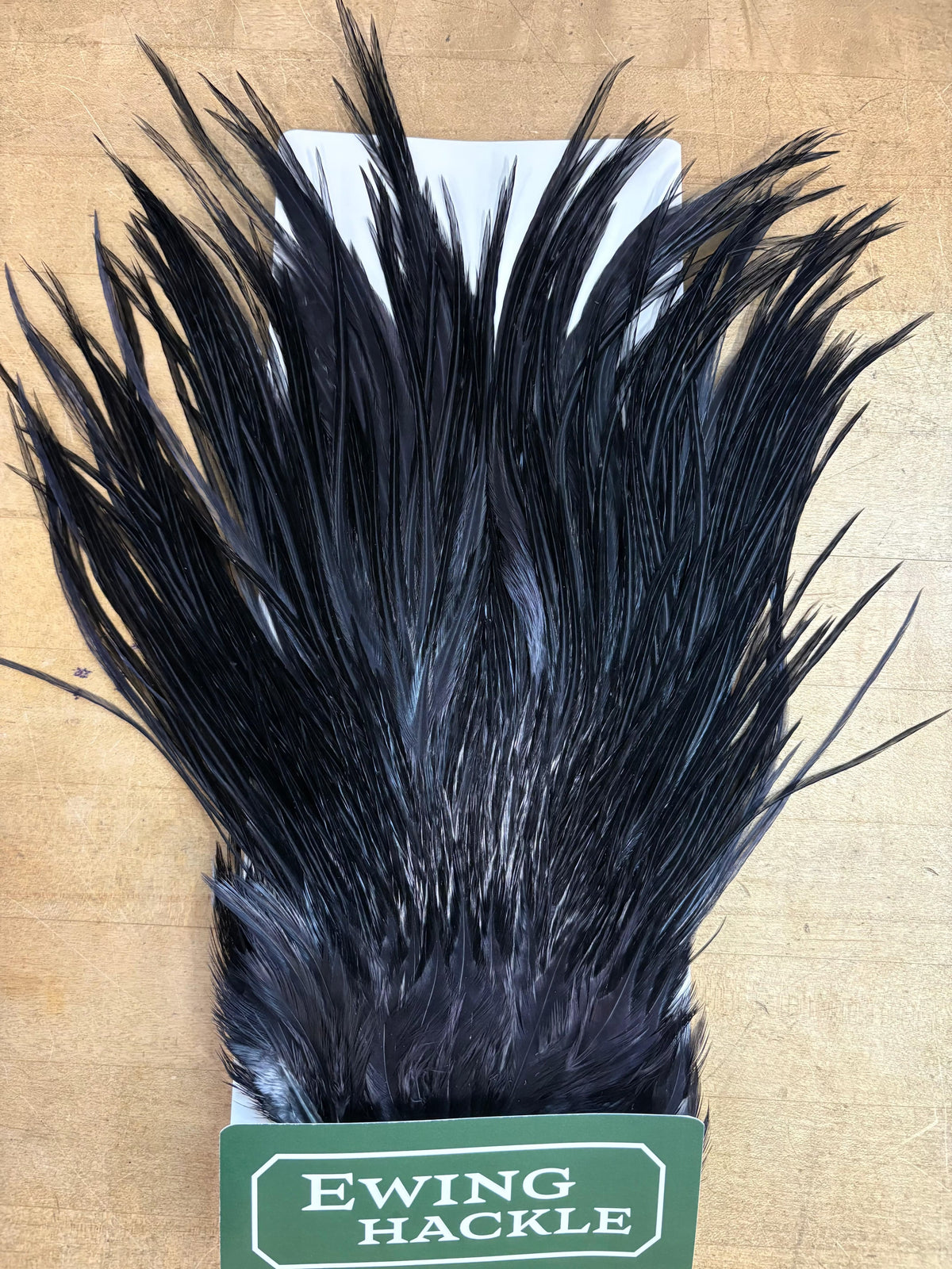 These are great quality full saddle hackles. The majority of these feathers are true "sword" shaped feathers, great for flatwings and other saltwater streamers. They also have a good amount of bigger "webby" feathers on the back for palmering or tying half and half clousers minnows and other medium to large sized streamers. There are also varying amounts of thin feathers on the sides which have many uses. The main difference between these saddles and the Cordeiro Saddles is that these have a range of feathers on them, while the majority of the feathers on the Cordeiro Saddles are perfect swords.