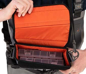 For the angler looking to keep essential gear, tools, and lures on them, the Simms Open Water Tactical Waist Pack is a great option for the land-based or kayak/boat angler alike. This bag includes three removable 7" x 3" storage tubes designed for lure storage, while external webbing allows for additional bags, tool, and gear attachment. A padded and removable shoulder strap allows for easier carry while a belt attachment on the back accommodates 2" surf belts.