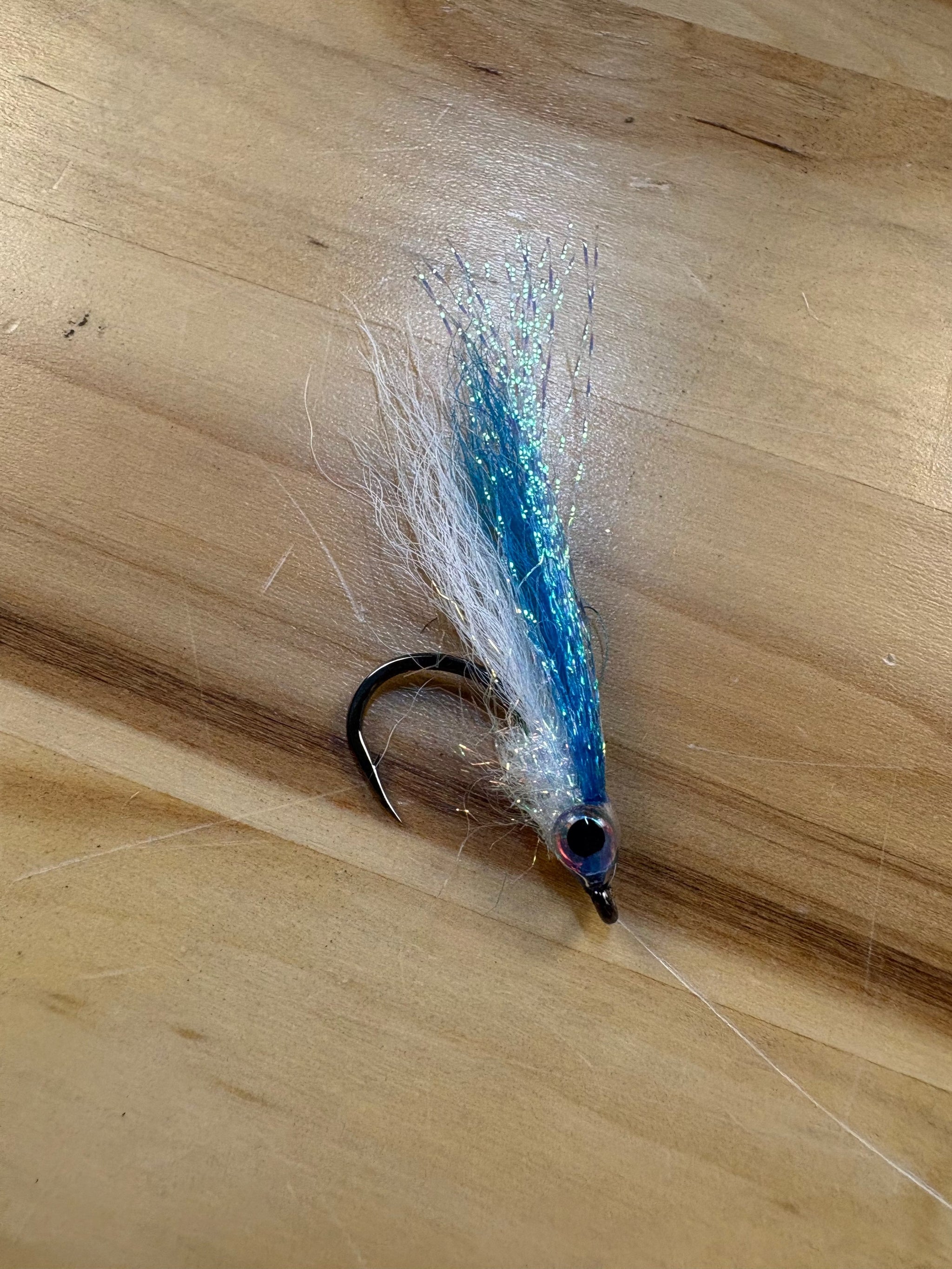This small minnow pattern is great for when fish are being picky or on rain bait. Tied on a strong short shank hook, this fly is ready for when elephants are eating peanuts, or Albies are keyed in on anything small.