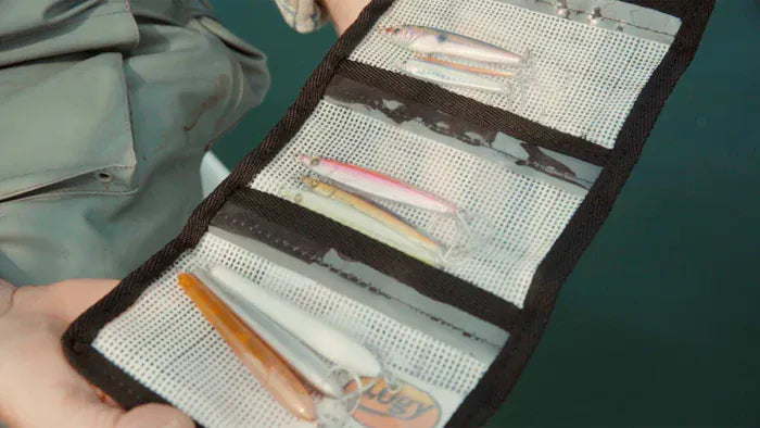 The Hogy Mesh Jig Bag Large offers simple, reliable storage for metal jigs and soft baits up to 12 inches. Built from heavy-duty marine-grade mesh and vinyl, it holds gear securely while allowing water to drain and air to circulate. Full-length Velcro strapping keeps everything in place, and when the trip is done, just rinse the bag and hang it to dry.