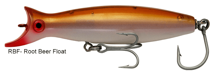 El Nadador de cuello pequeño flota cuando aterriza y cuando se recupera nada hacia abajo entre 3 y 5 pies incluso en aguas turbulentas. Los sonajeros ayudan a los peces grandes a perfeccionar este señuelo incluso en aguas oscuras y sucias. Cuando Danny's, Atom's y otros no pueden morder en olas fuertes, este es un señuelo al que acuden muchos pescadores.