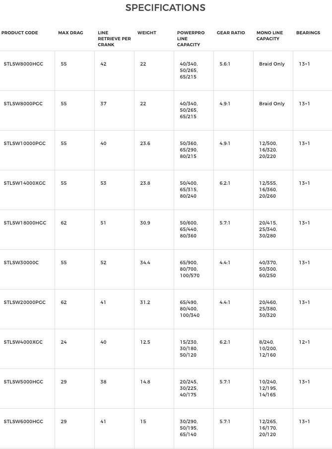 El SW C trae más mejoras a este increíble carrete. Unidad infinitatrae un arranque aún más ligero y potente y el Arrastre del disipador de calor (tamaños 10000 y 14000)fortalece aún más uno de los frenos más poderosos que existen.