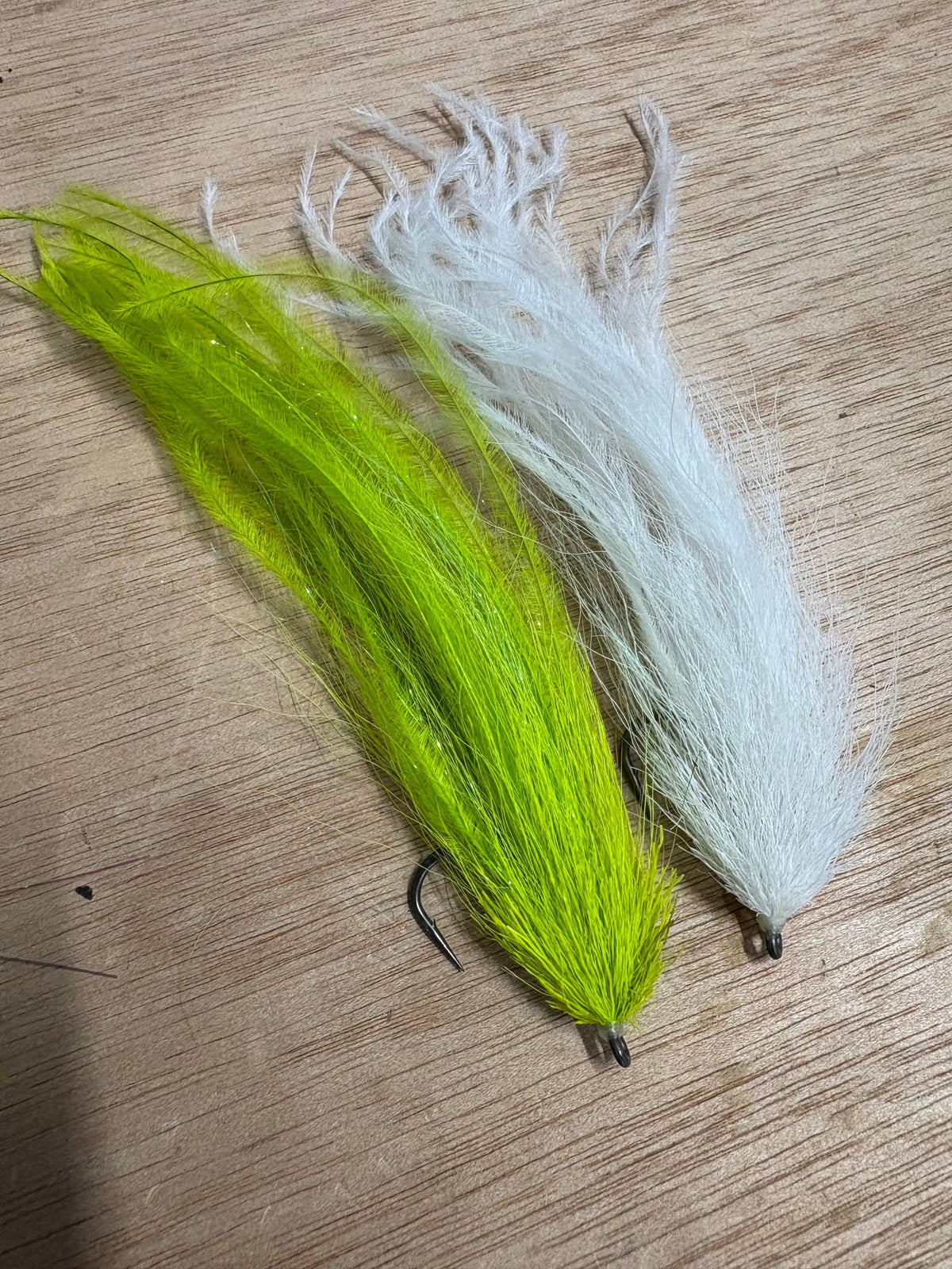 This is a great medium menhaden imitation that is easy to cast and has a lot of movement in the water. Tied on strong Mustad Tarpon Hooks.
