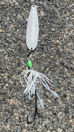TheM3Tackle Fully Rigged Spoonsare a great way to present a larger offering to fluke and work well in addition with a natural or artificial bait. These spoons provide for some extra flash and wobble which is truly irresistible to big fluke and have worked very well in the Nantucket and Montauk areas. They can be rigged in multiple different ways, with smaller blades doing better on a dropper rig while the larger spoons rig well on a three-way rig.