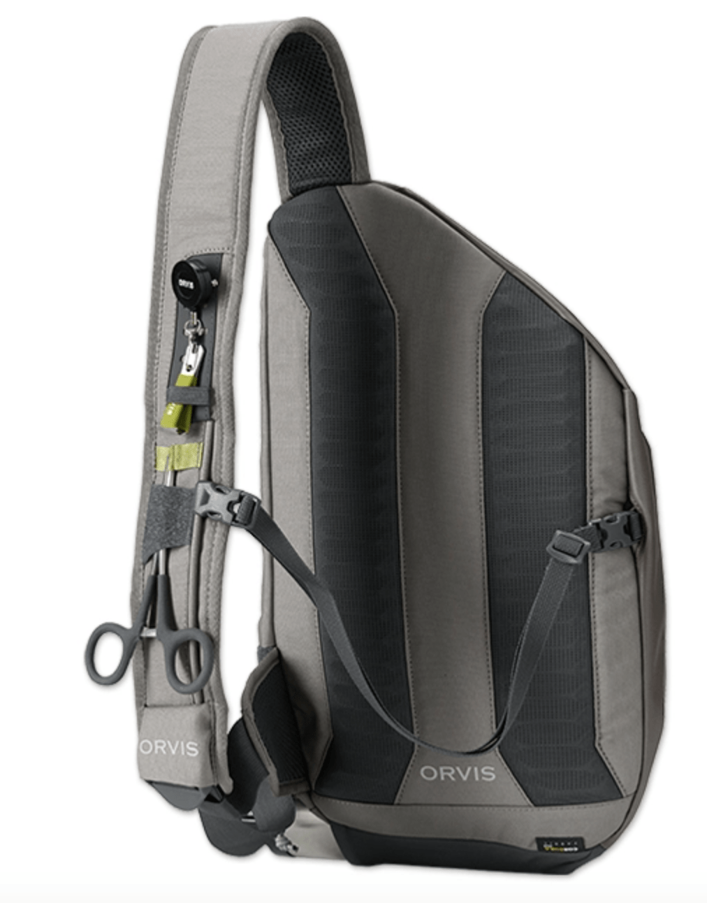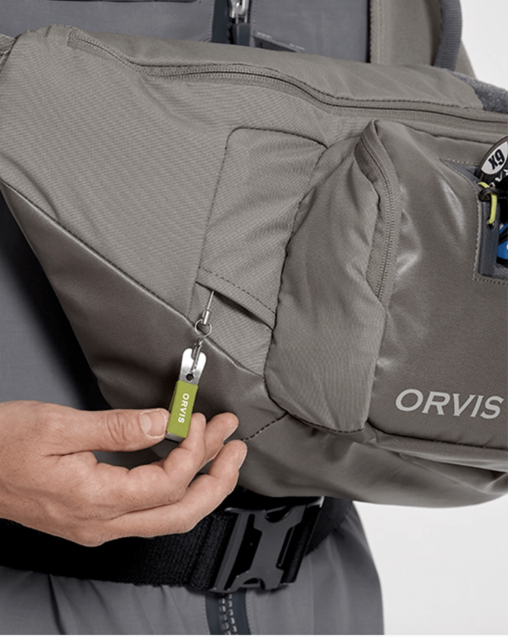 The best-selling Orvis fly-fishing Sling Pack has been updated and improved not only for durability, but with innovative new convenience features as well. The 100% recycled CORDURA® ECO; platform is designed to store, organize, and offer easy, intuitive accessibility while staying completely out of your way when fishing. New features include the Tippet Whippet recessed docking station with tippet bar included for instant, fixed, and fumble-free access for up to six spools. Main compartment has zippered security pocket with key fob and stretch mesh pockets for small sort storage. Front drop-down has zippered pocket with elastic mesh slip pockets. Lo-pro zinger/nipper pass-through, easy swing handle, and water bottle holder with retainer. Front strap “dashboard” offers multiple docking stations for forceps and small tools as well as sliding adjustment for sternum strap. Left shoulder design frees up casting arm and shoulder. Weight: 500g/1.1 lbs. Shell: 100% recycled CORDURA® ECO 600 denier polyester with strategic TPU coating. Liner: 100% recycled 200 denier polyester. Spot clean. Imported. Tippet and accessories not included.