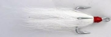 Great for replacing the rear tail hooks on your favorite custom plugs. Strong VMC closed eye treble hook with quality hair strapped to it with epoxy covered thread wraps for outstanding strength. A few pulls from your pliers won't tear the hair out on these babies!