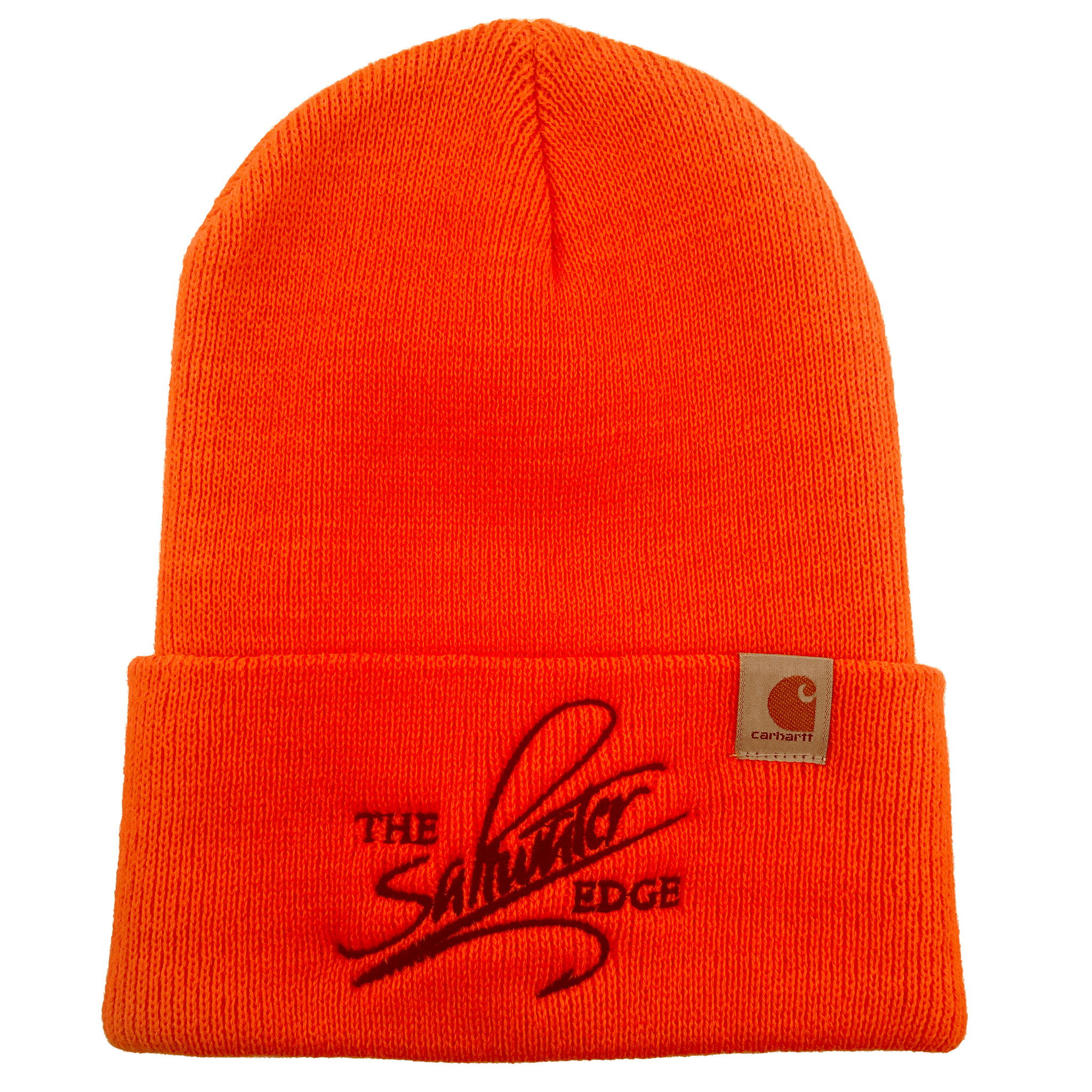 A new, super durable and warm, beanie-style cap from Carhartt, featuring a stitched Saltwater Edge Logo. Stay warm and represent the Edge all winter long in a beanie from a brand we know and trust. Available in three great colors. 100% Acrylic rib knit with a stitched Carhartt logo.