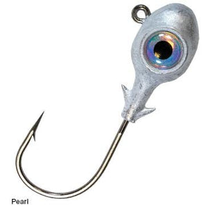With large 3D eyes, the Z-Man Striper Eye Jigheads provide a serious option for the inshore angler looking to target big stripers, bull reds and more. A strong 6/0 Mustad UltraPoint hook and outfitted on all weights of this jighead, along with twin keeper spikes to lock in your soft plastics in place.
